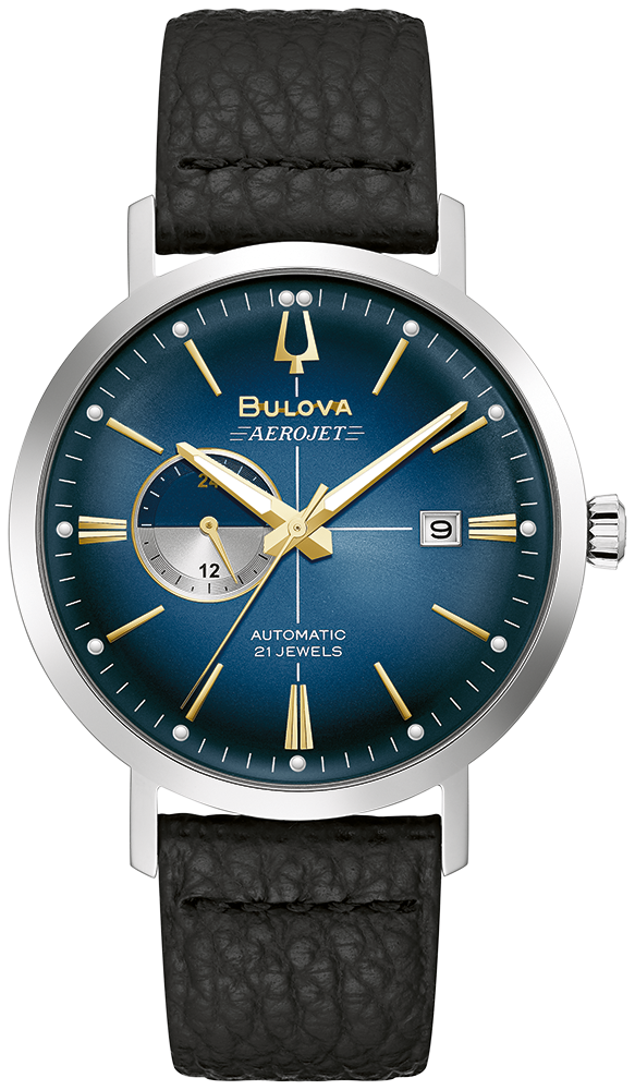 הדגמים האוטומטיים החדשים של Bulova בקו Aerojet מביאים כשרון עכשווי לשעון היוקרה הקלאסי הזה בהשראת שעוני וינטג'. החוגה המדהימה בכחול קרני השמש כוללת הדגשים בגווני זהב ומחוון יום/לילה דו-צבעוני.