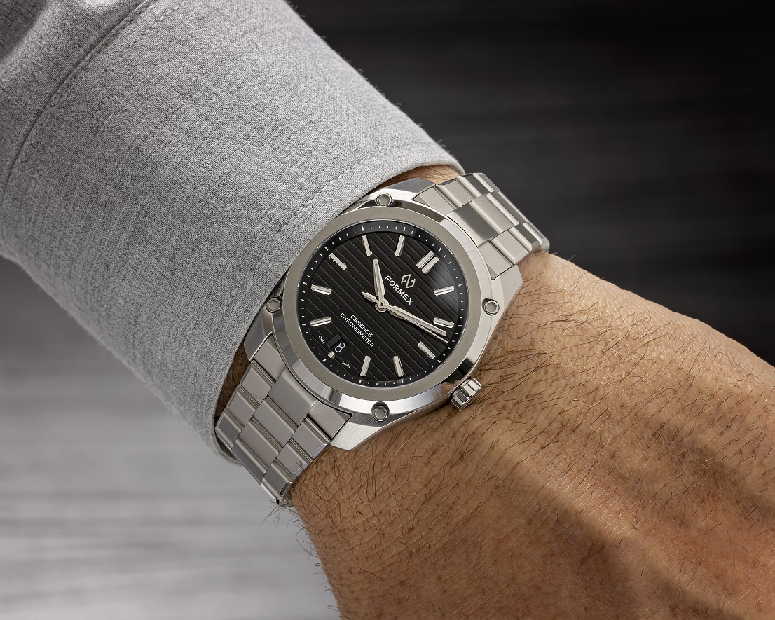 שעון FORMEX ESSENCE לוח שחור ורצועת מתכת