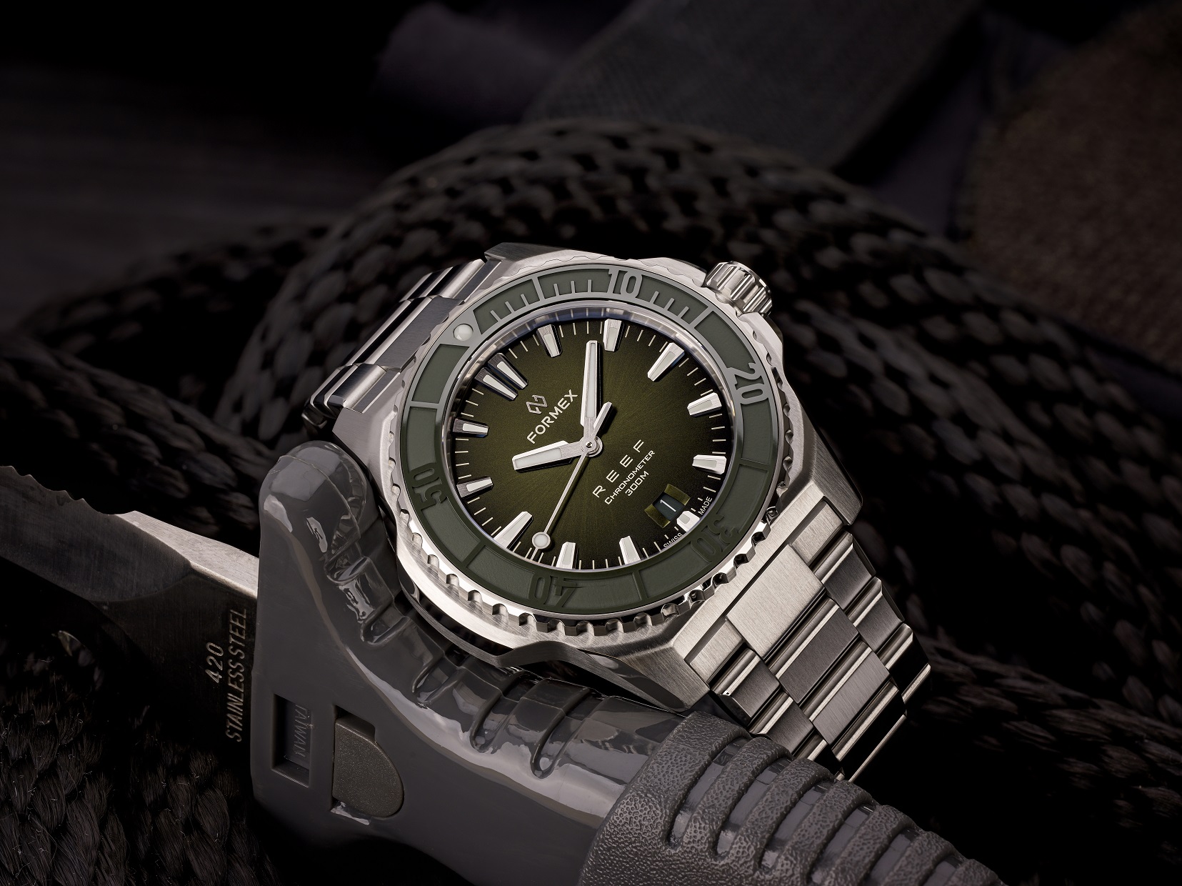 שעון FORMEX REEF 300M COSC לוח ירוק ורצועת מתכת