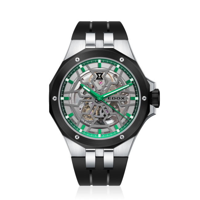 Edox crown and/or pusher with double O'ring , Luminescent hands and/or indices , Screw-down crown and/or pushers , See through caseback